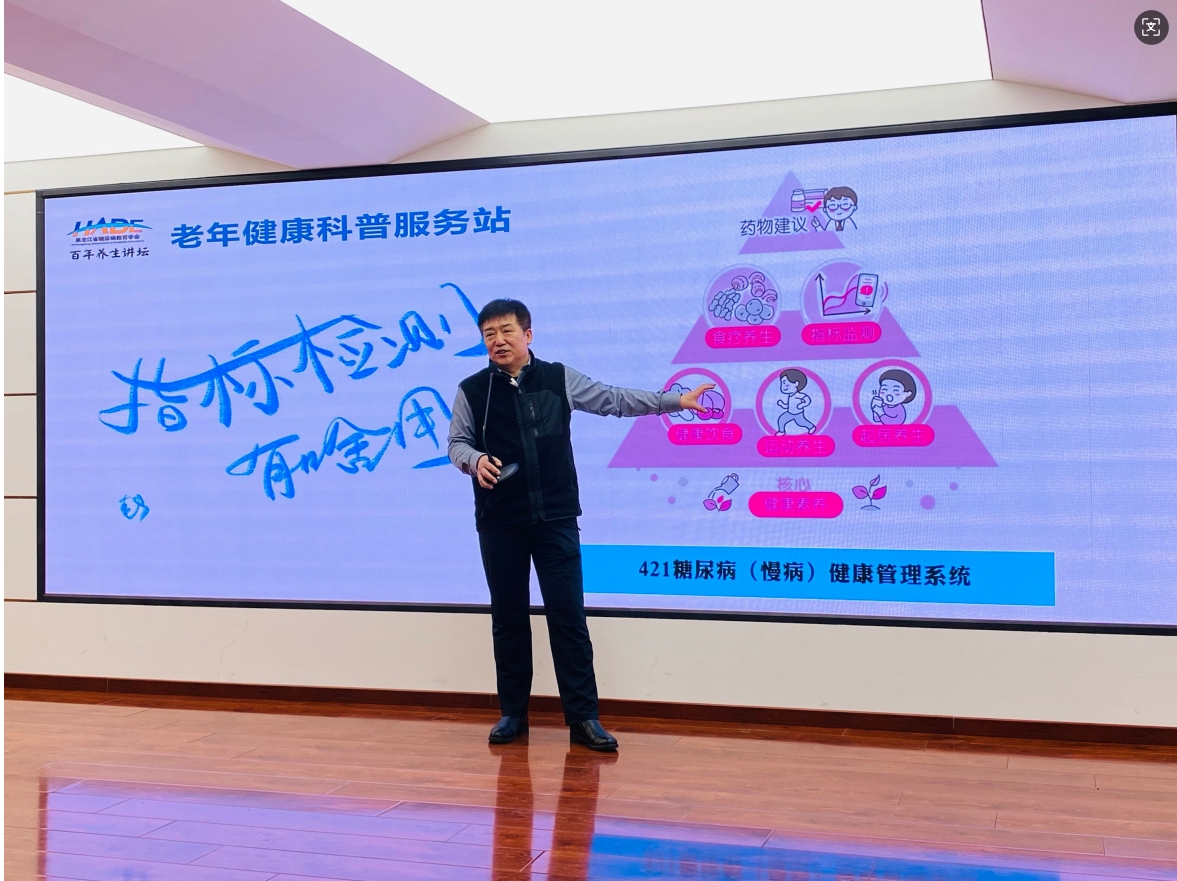 紧接着,由省糖尿病教育学会秘书长马宏达送给在座居民一堂健康科普的“开胃菜”,以互动的形式讲解了糖尿病等慢病的预防理念和方法,揭示了相关的社会现象。